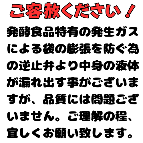 【注意事項3】 | 醗酵基材として、「上白糖」を使用しております。 例えば、「てんさい糖」や「きび砂糖」などは、そのままいただくには大変適しているのですが、醗酵を促す基材としては、不向きな糖類であり、「上白糖」の持つ浸透圧を利用することで植物中の酵素を壊すことなく抽出できます。 そして、製品の甘さは「上白糖」とは全く別物です。「上白糖」は、醗酵の過程を経る事により醗酵微生物の酵素によって分子が切断される為「果糖」と「ブドウ糖」 に分解されております。(糖検査にて、製品からは上白糖は検出されておりません。) 従いまして、甘さの正体は通常の生成された砂糖の甘さではなく、「果糖」「ブドウ糖」その他複雑な構成成分となります。このふたつの糖類は身体に必要なエネルギー源として点滴でも使用されているものです。 カロリーについても「生きているカロリー」ですから、加工食品に比べて燃焼効率が良く心配はありませんが、もし気になるようでしたら、摂取カロリーを見て量の増減をしてあげてください。 |
